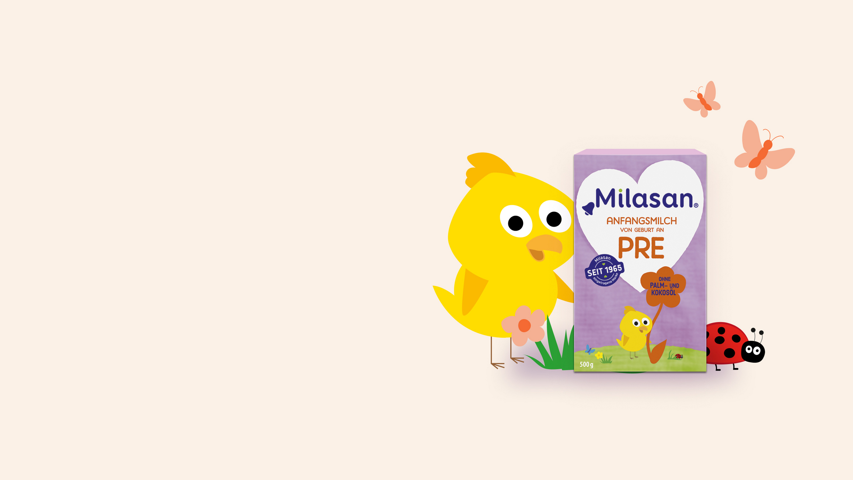 - Wie Muttermilch enthält auch Milasan PRE Kohlenhydrate. Häufiger oder dauernder Kontakt mit den Zähnen an kohlenhydrathaltiger Nahrung kann Zahnschädigungen durch Karies verursachen. Deshalb sollte eine Flaschenmahlzeit – wie eine Stillmahlzeit – nur so lange dauern, wie für den eigentlichen Trinkvorgang nötig ist. Überlasse deinem Baby die Flasche nicht zum Dauernuckeln.